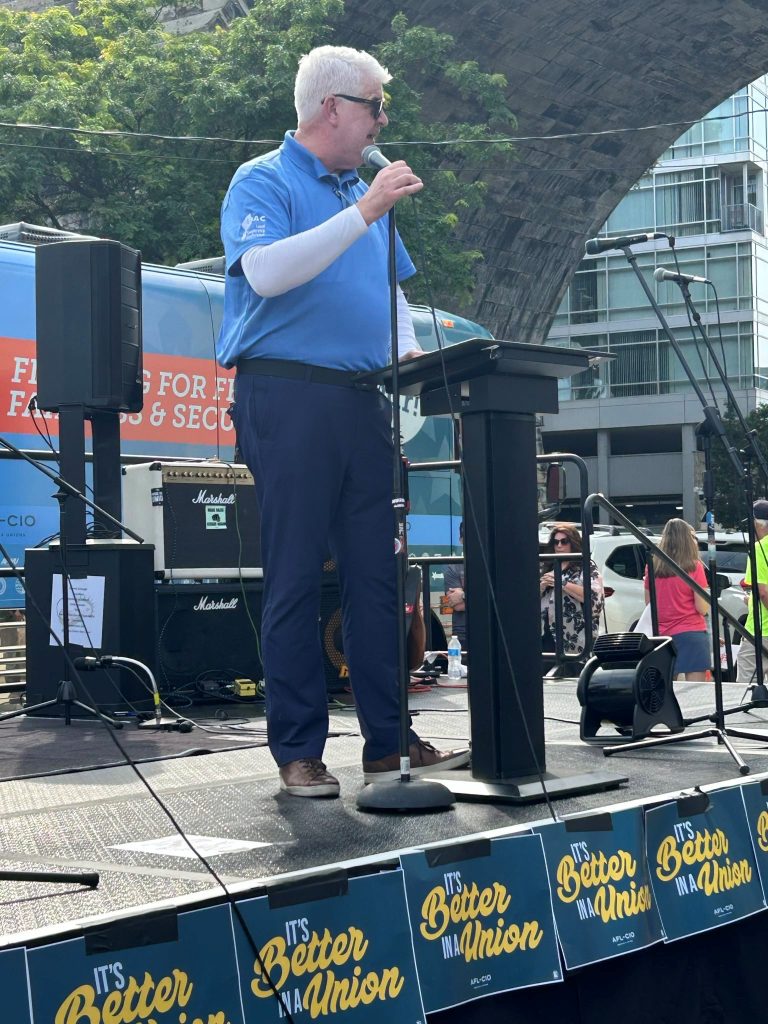 The AFL-CIO’s “It’s Better in a Union: Fighting for Freedom, Fairness and Security” bus tour made a stop in Cleveland over the weekend, and Local 23 members joined together to listen to union leaders from all across the country and all industries talk about how the current administration’s policies are harming workers.