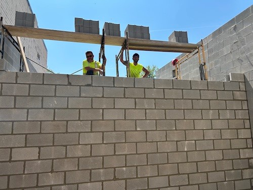 Mike Click and Brian Phillips working for Metro Masonry at Ripley Middle School in Jackson County, West Virginia.