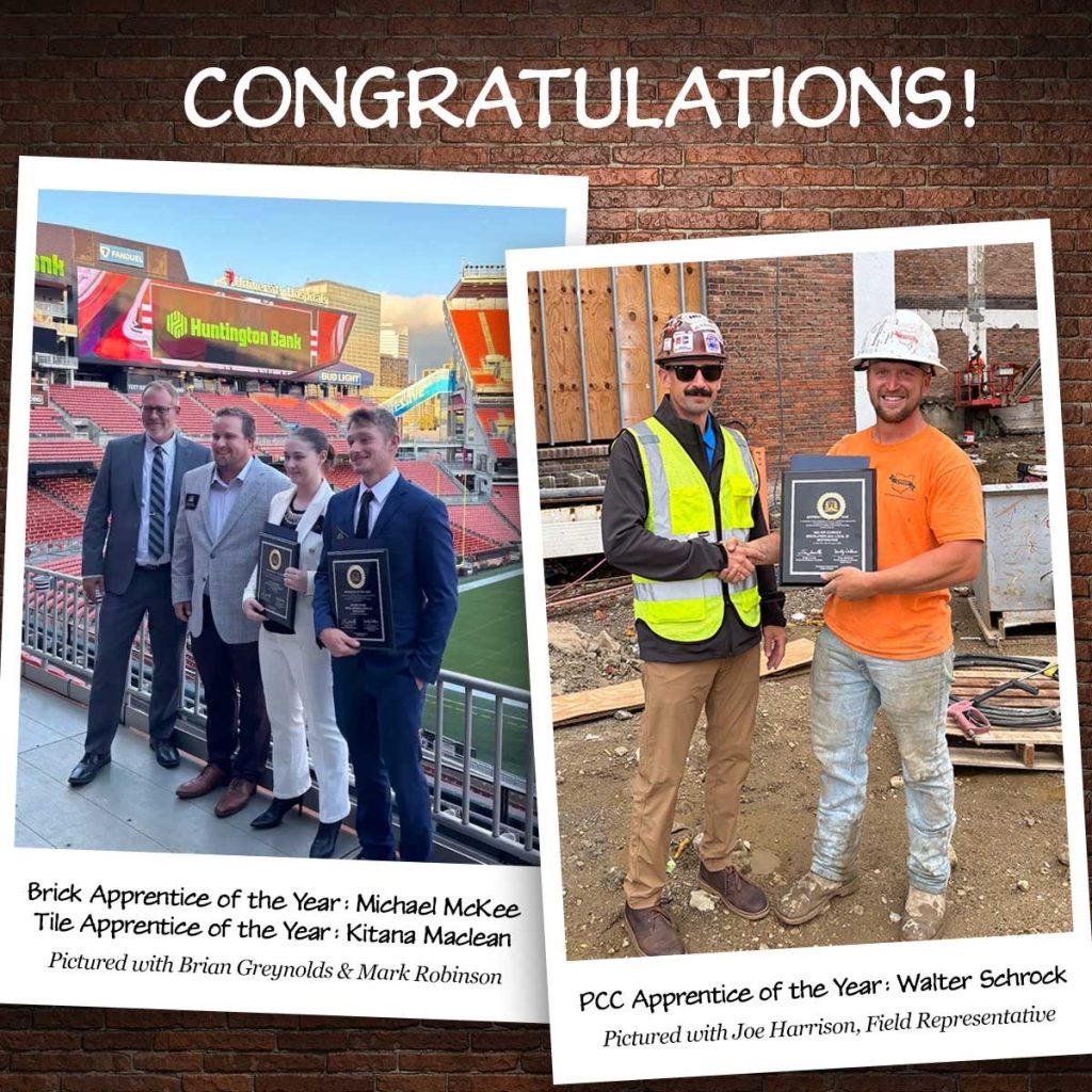 At this year’s Cleveland Construction Employers Association (CEA) Awards Ceremony, Apprentices from each union craft were honored with the title Apprentice of the Year in their particular trade. The BAC had three standout apprentices recognized as Apprentices of the Year in their respective crafts.